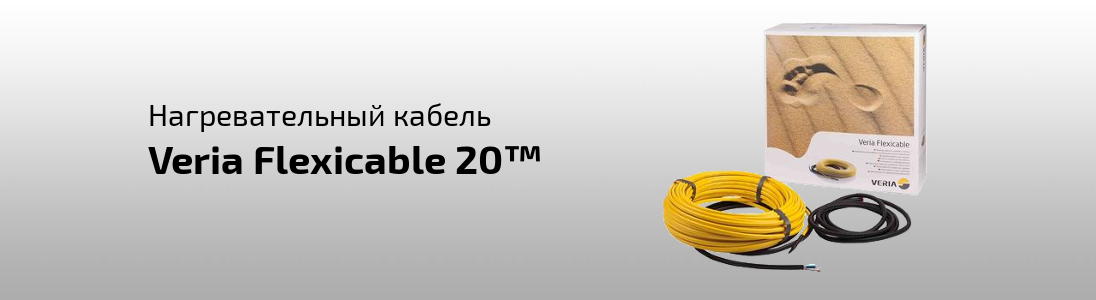 Нагрівальний кабель Veria Flexicable 20 має потужність 20 Вт на погонний метр, що дозволяє досягати високої питомої потужності нагрівальної системи, навіть на таких вибагливих об’єктах як тераси, підлоги з недостатньою ізоляцією тощо.